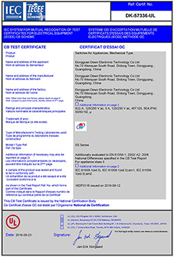 德傲微動(dòng)開關(guān)CQC CB CE證書正式下發(fā)